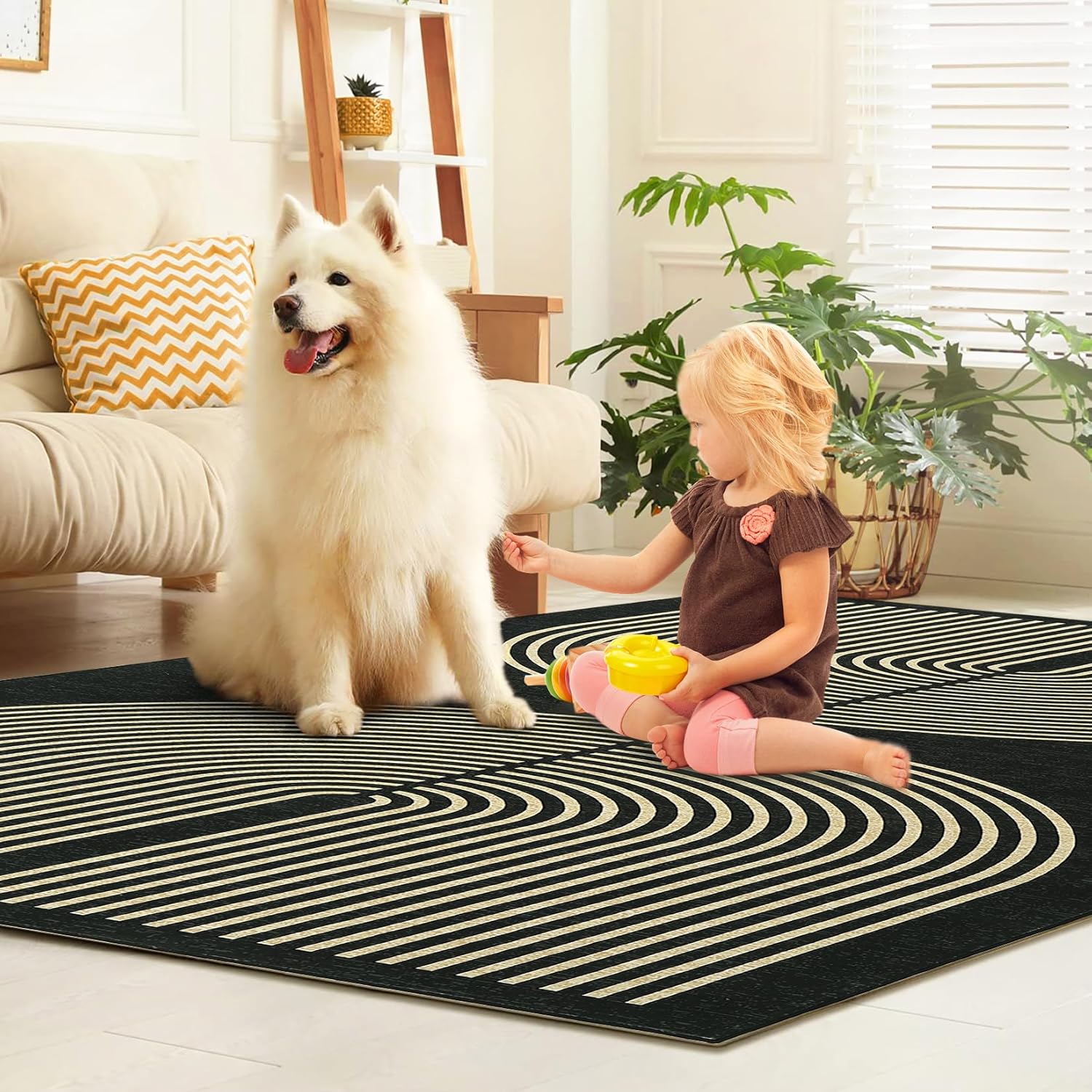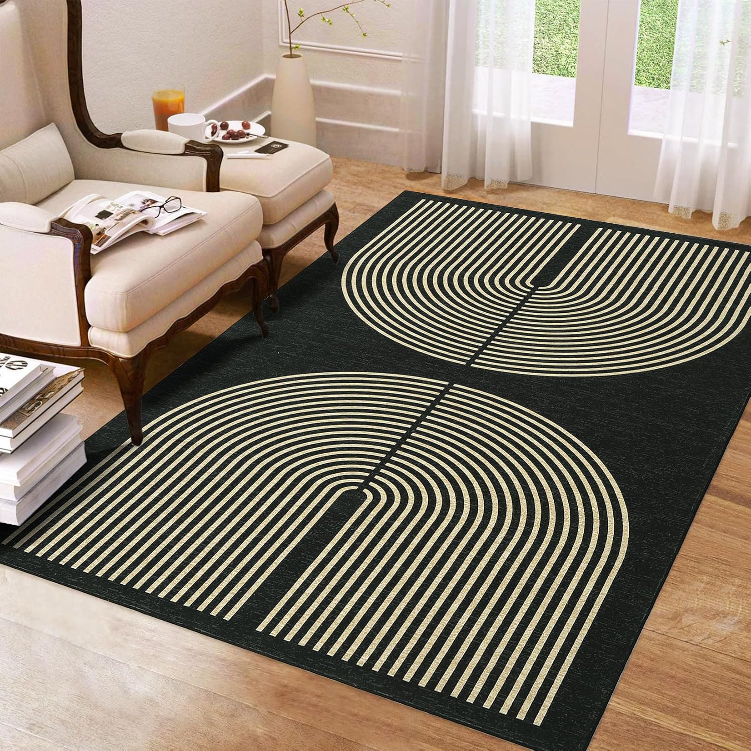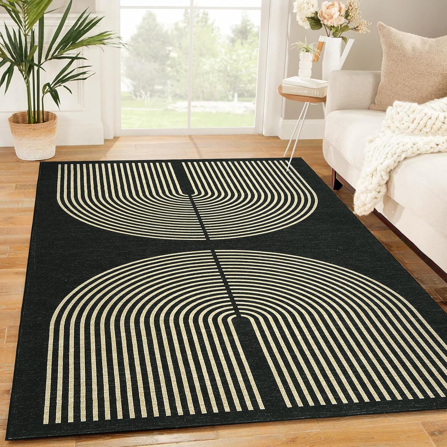 Made of polyester fabric, it has a soft texture and adds a touch of luxury to your living space. The arched design creates a dynamic feeling for this geometric rug, which is a great foundation for your living room or bedroom decoration.