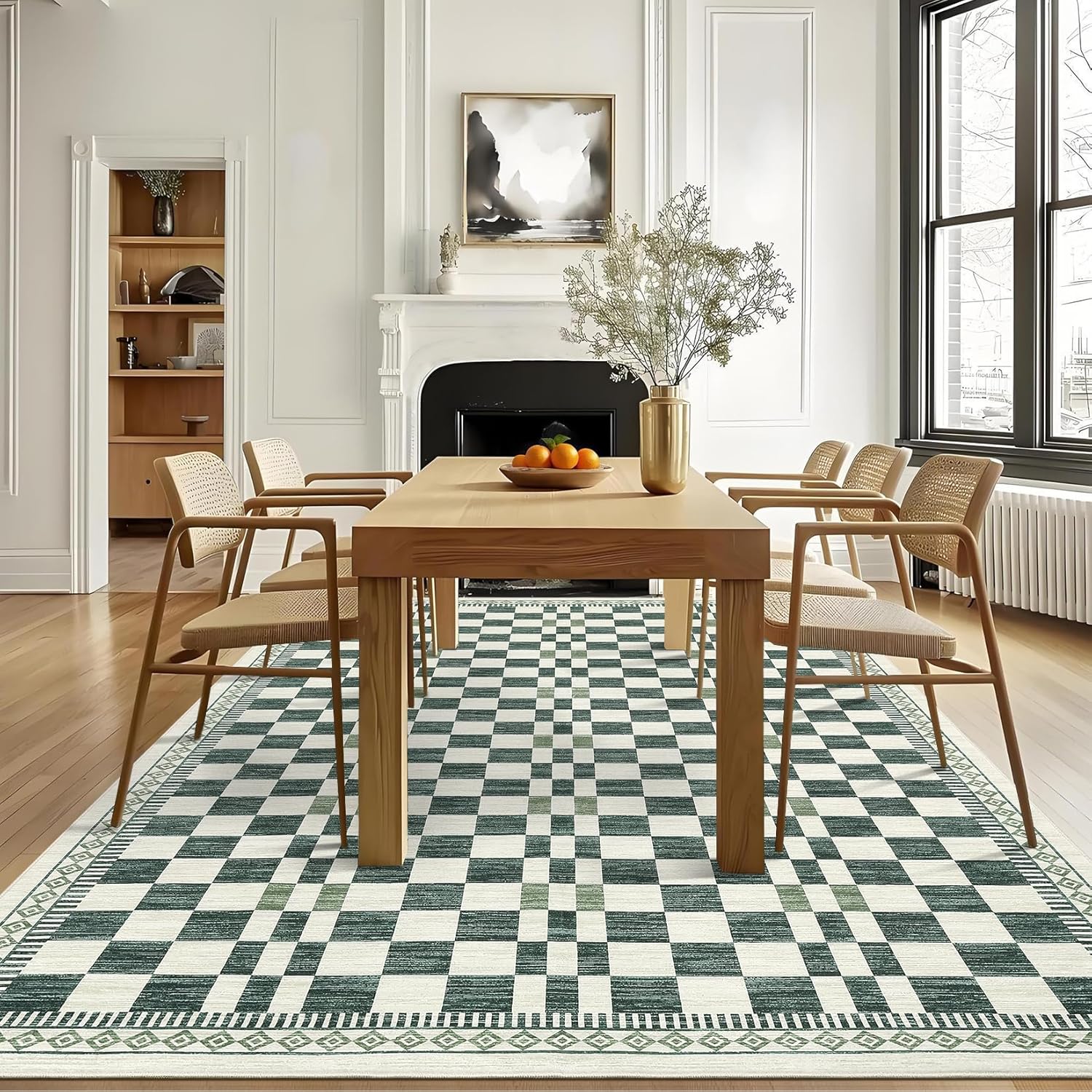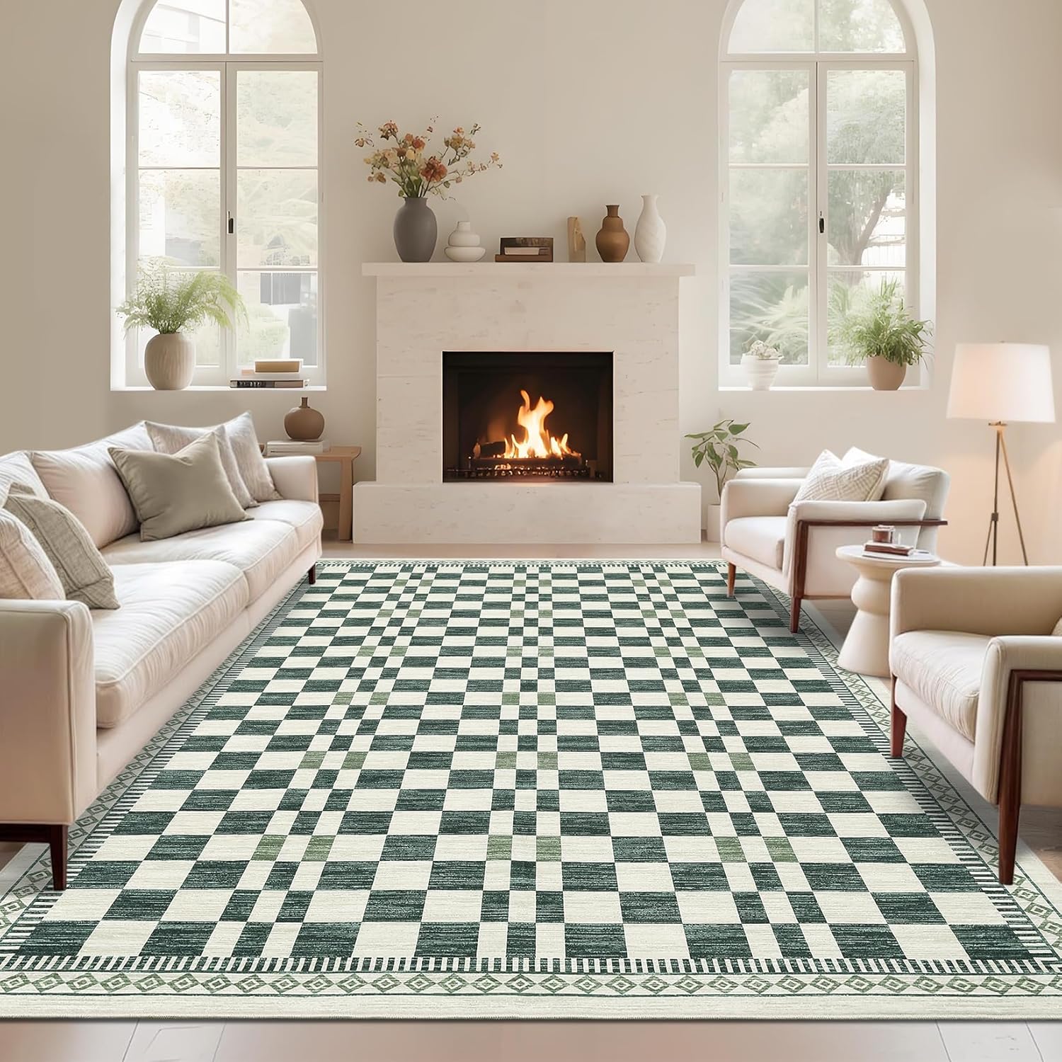 Modern checkered design: This washable carpet features a stylish checkered pattern that can add a modern touch to any living space and perfectly matches the modern decoration style.