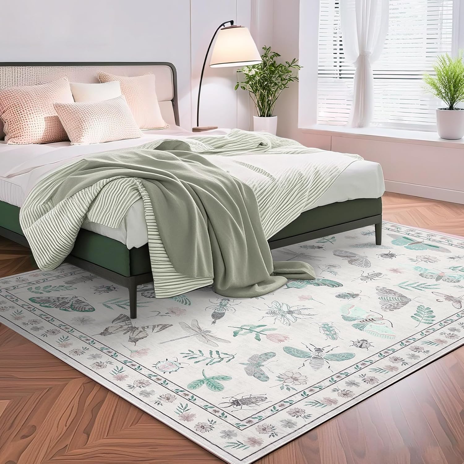 Modern floral pattern: This carpet features a stylish modern floral, insect and butterfly pattern that can add a touch of freshness to any living room, bedroom, dining room, kitchen or corridor, easily enhancing your home decoration effect.